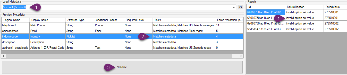 - View the list of rows that failed the validation (Fig. 1, Pt. 4)